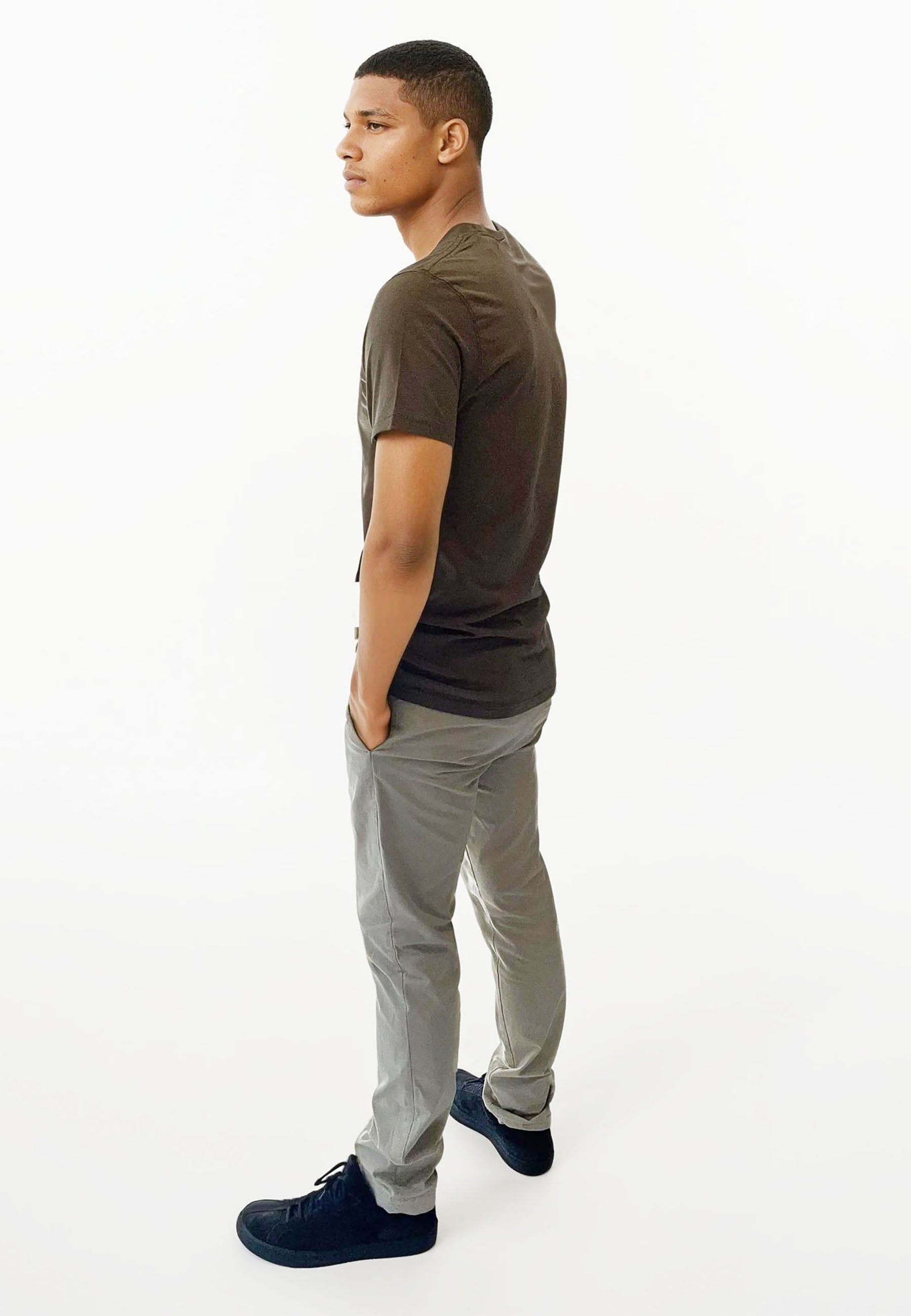 Med sit slanke snit får du et moderne look, men vi anbefaler at gå én størrelse op for at opnå den bedste komfort. Perfekt som basis-tee, under en skjorte eller stylet alene for et minimalistisk udtryk.